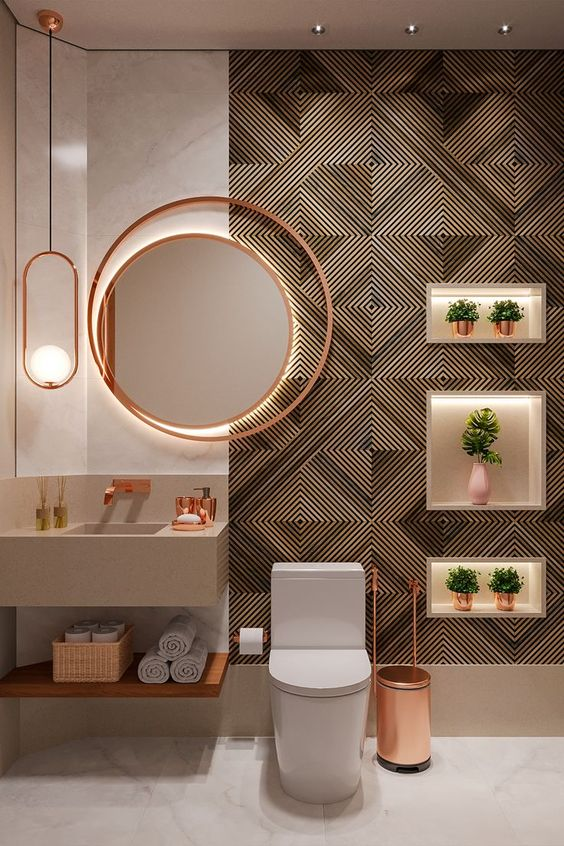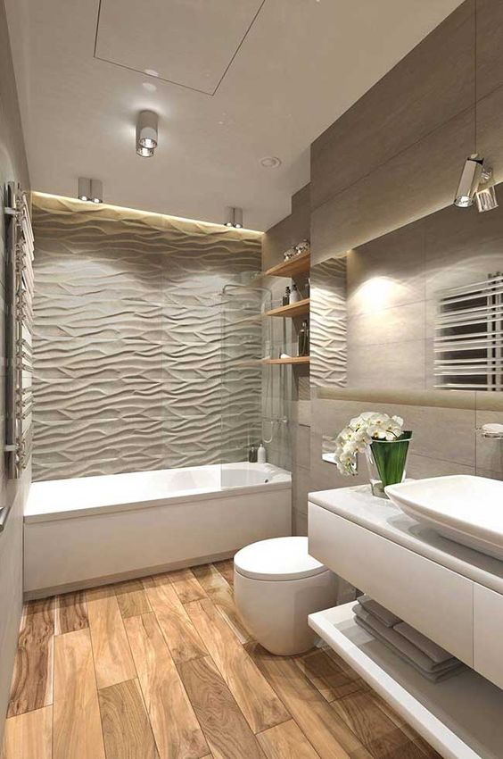 The choice of location for the toilet is extremely important for the layout of the entire bathroom. It is necessary to select a location that matches the style of the space and creates a spa-like atmosphere. At the same time, it’s important that the bathroom isn’t the first thing guests see when they walk through an open door, as it’s not the prettiest aesthetic aspect.