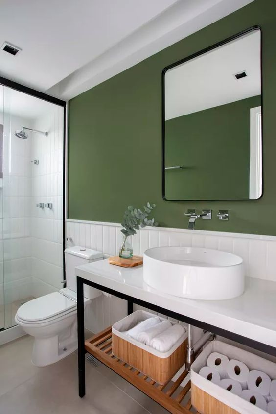 For a successful bathroom makeover, it’s important to pay attention to detail. If you want to go bold, consider adding pops of color. If you have a small bathroom, opt for a bright color palette such as white or light to give the impression of spaciousness. If you have a larger space, choose any color you like, as long as it matches and maintains a clean, peaceful feel. However, it is recommended to avoid painting the ceiling in dark colors, as this can shrink it and make it less spacious.